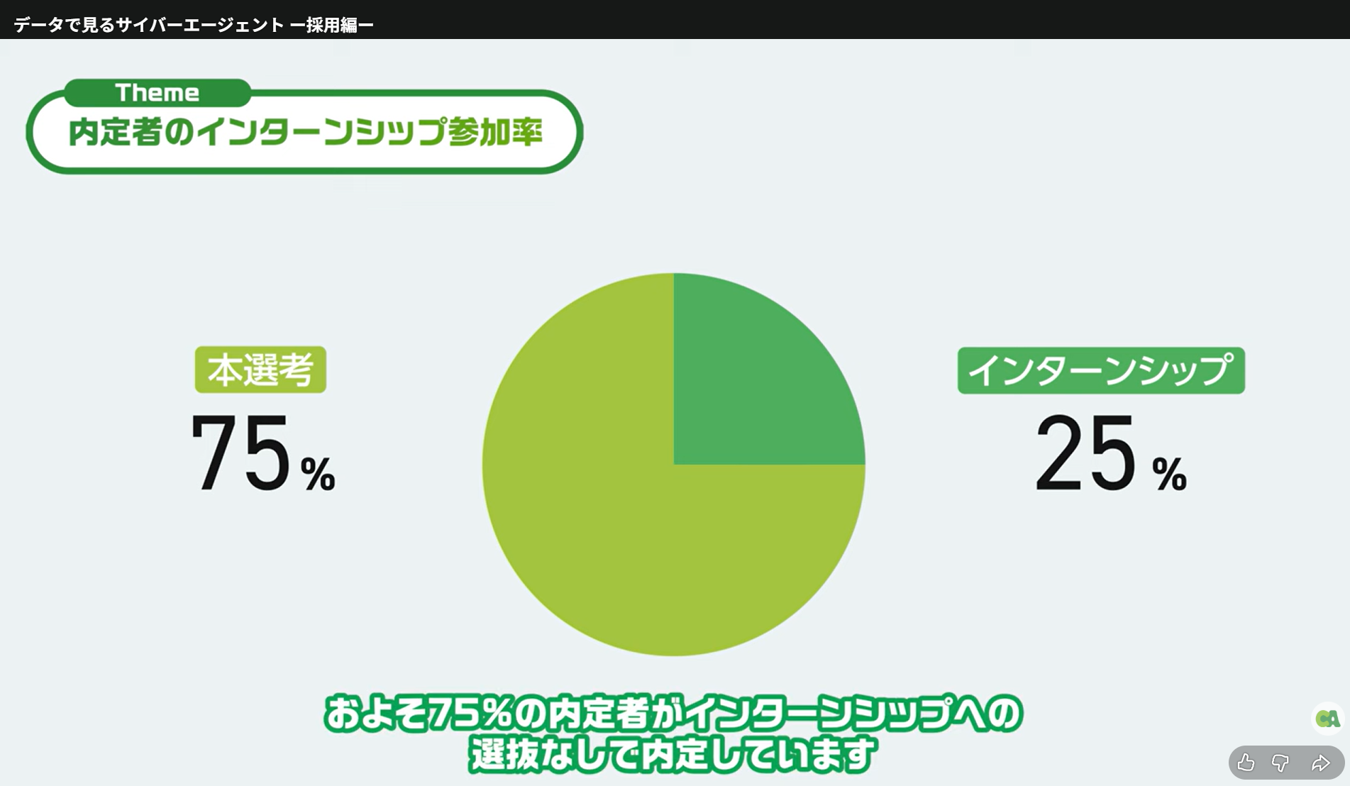 サイバーエージェントの動画からは、会社説明会動画において、データによる客観的な情報提供と、日常業務を通じた具体的なイメージの提示を組み合わせることが、学生の理解や納得感を高める一つの方法であることが分かります。