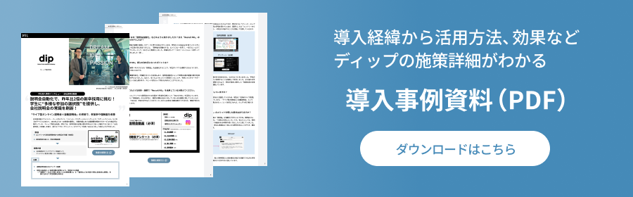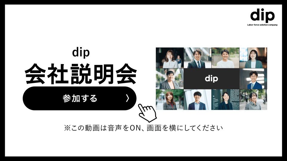 日本最大級のアルバイト・パート求人サイト『バイトル』やスポットのバイトサービス『スポットバイトル』などの人材サービスに加えて、2019年よりAI・DX事業を展開し、労働市場における諸課題を解決するサービスを総合的に提供している、ディップ株式会社様。同社では、新卒採用の目標人数を昨年比の2倍へと増加するにあたり「会社説明会」の見直しをはかり、新たなアプローチとしてインタラクティブ採用「Recruit MIL」を導入いただきました。「ライブ型オンライン説明会×自動説明会」の併用で、参加率や理解度を改善しています。