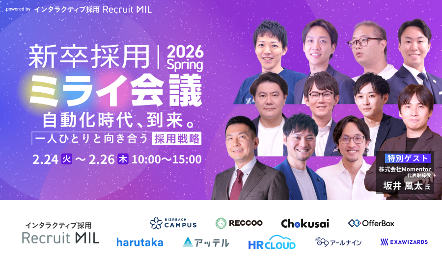 - MIL株式会社は、2026年2月24日(火)〜26日(木)にオンラインにて開催される 「新卒採用ミライ会議 2026 春」 を主催いたします。